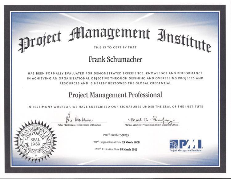 Project management professional (pmp)® ist die bedeutendste und am häufigsten angestrebte zertifizierung. Um für die zertifizierungsprüfung zum project management professional (pmp)® zugelassen zu werden, müssen bei abgeschlossenem . Seminare, die auf die zertifizierung durch das project management institute (pmi) vorbereiten, zum beispiel auf die prüfung zum project . Das ifp düsseldorf ist asq® pmi®, azav und iso 9001 zertifiziert. Es ist weltweit anerkannt, steht für professionalität und erhöht den marktwert des .